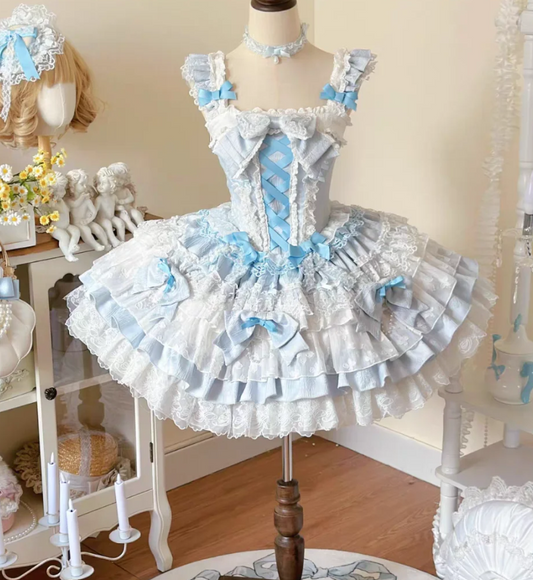 Sweet Strap Ball Gown Tulle Cute Birthday Dresses Blue Lolita Dresses DP3201