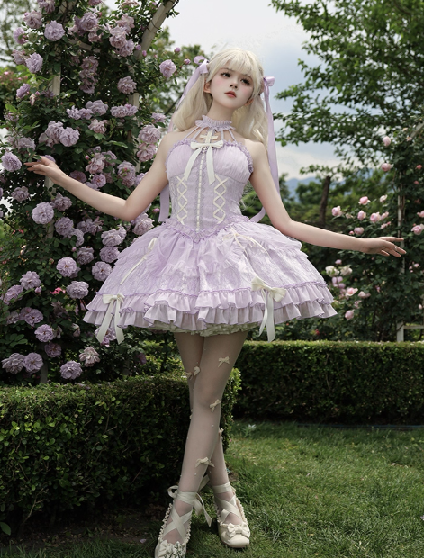 Vintage Ball Gown Halter Purple Chiffon 22th Birthday Dress Lolita Dress Cute Lolita Outfits DP2758