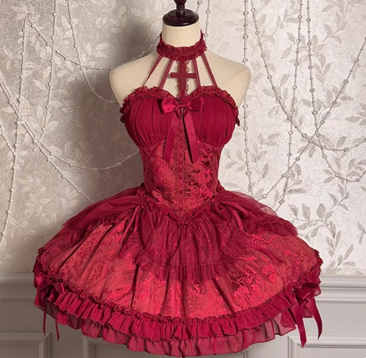 Vintage Ball Gown Halter Tulle Lace 22nd Birthday Dress Lolita Dress Cute Lolita Outfits DP2761