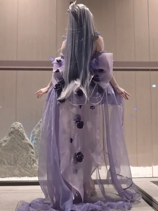 Vintage Ball Gown Spaghetti Straps Chiffon Lilac Summer 18th Birthday Dress High Low Lolita Dress 21st Birthday Outfits DH2417