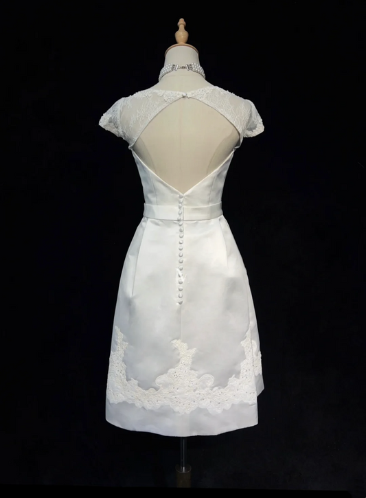 Modest Wedding Dress Sheath Scoop Neck Short Sleeves Summer Lace Wedding Dresses Bride Dress Bridal Gowns DH1440