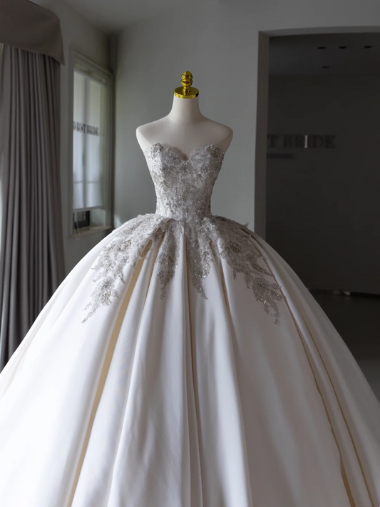 Vintage Wedding Gown Bridal Dress Ball Gown Strapless Satin Wedding Dress White Wedding Dresses Modest Wedding Gowns DH1502