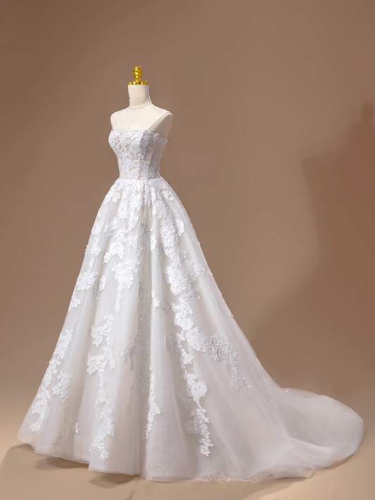 Princess Bridal Dress Ball Gown Strapless Lace White Wedding Dress With Appliques Wedding Dresses Modest Wedding Gowns DH1764