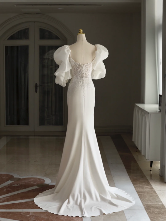 Retro Mermaid Sweetheart 3/4 Sleeves Satin Wedding Dress With Lace Wedding Dresses Modest Wedding Gowns DH1296