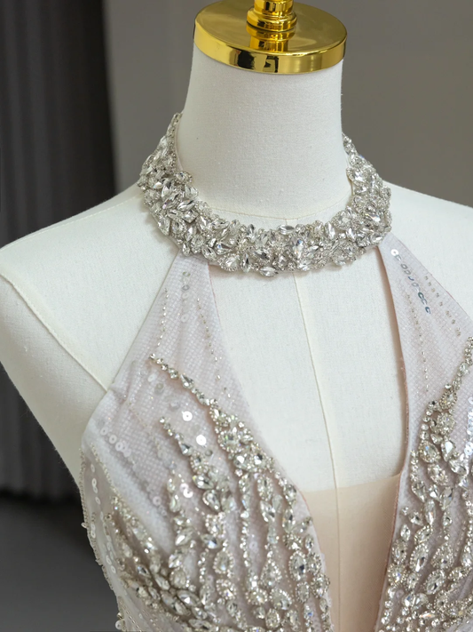Modest Bridal Gown Mermaid Scoop Neck Tulle Silver Beads Long White Wedding Dresses Elegant Bridal Gowns DH1136