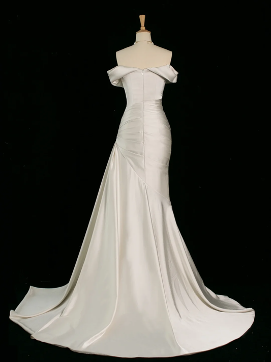 Pretty Wedding Dress Mermaid Off The Shoulder Short Sleeves Satin Long Vintage Wedding Dresses Bridal Gowns Brides Gown DH397