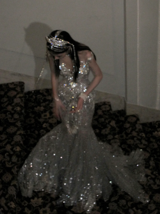 Sparkly Wedding Dress Mermaid Sequin Long Silver Wedding Dresses Brides Dress Bridal Gowns WD061
