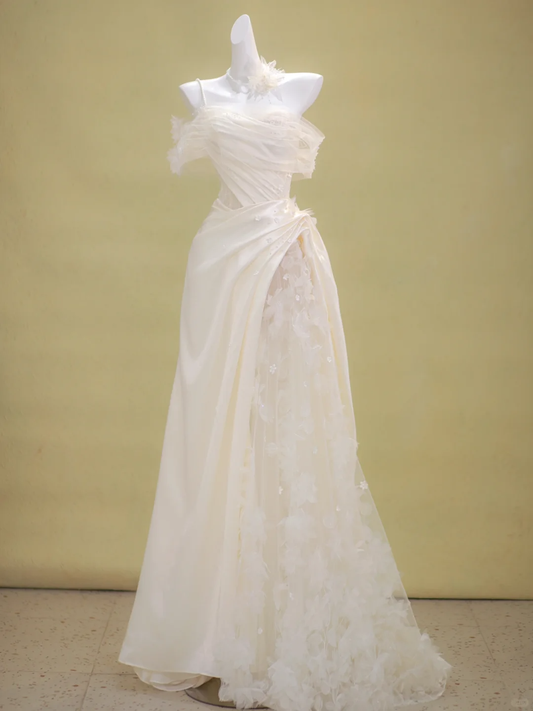 Romantic Bridal Gown Mermaid One Shoulder Ivory Tulle Wedding Dresses Minimalist Bridal Gowns WD003