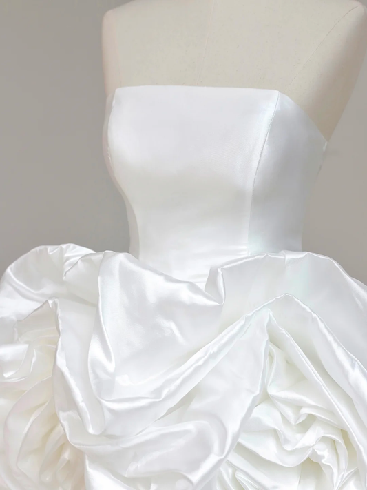 Pretty Wedding Dress High Low Strapless White Satin Wedding Dresses Bridal Gowns DP1579