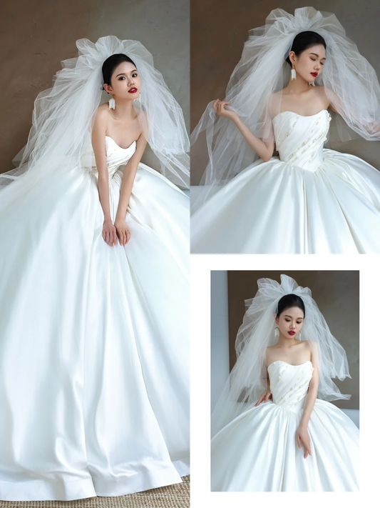 Pretty Wedding Dress Ball Gown Sweetheart White Satin Wedding Dresses Bridal Gowns DP1561