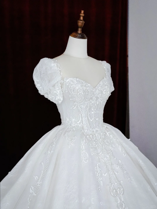 Glitter Wedding Dresses Ball Gown Sweetheart Short Sleeves Lace Wedding Dresses Bridal Gowns DP1491