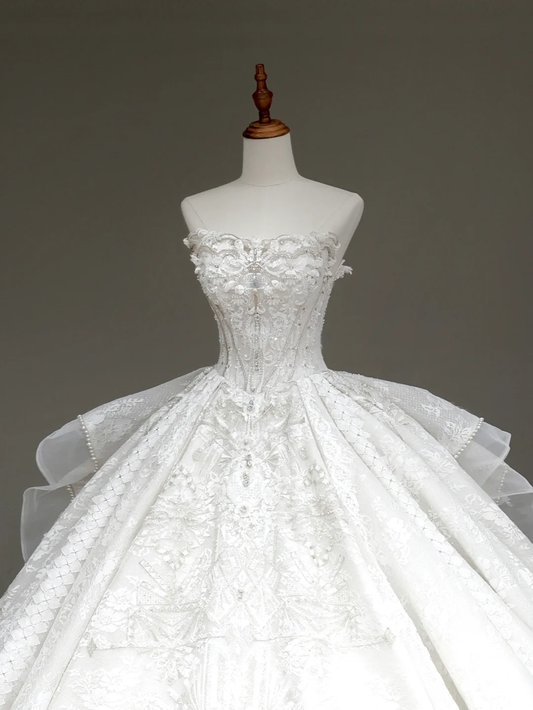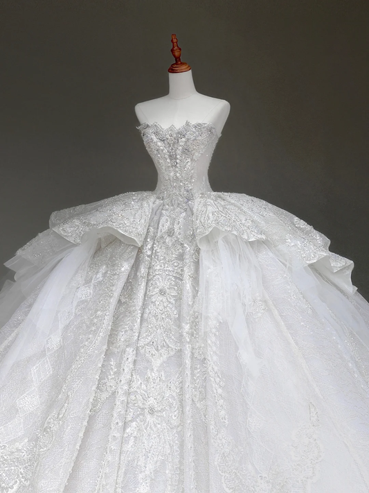Princess Bridal Gown Ball Gown Strapless White Sequin Beads Wedding Dresses Bridal Gowns DP885