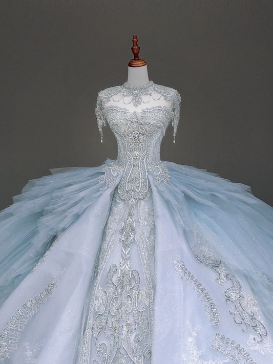 Princess Bridal Gown Ball Gown Strapless Blue Sequin Beads Wedding Dresses Bridal Gowns DP879