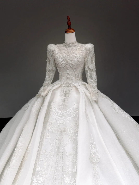 Princess Bridal Gown Ball Gown High Neckline White Sequin Beads Wedding Dresses Winter Bridal Gowns DP880