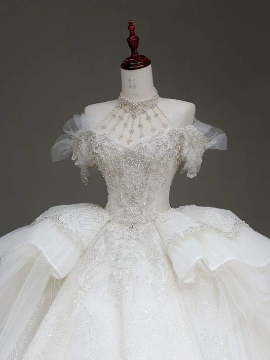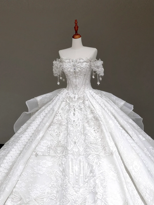 Princess Bridal Gown Ball Gown Off The Shoulder White Sequin Beads Wedding Dresses Winter Bridal Gowns DP886