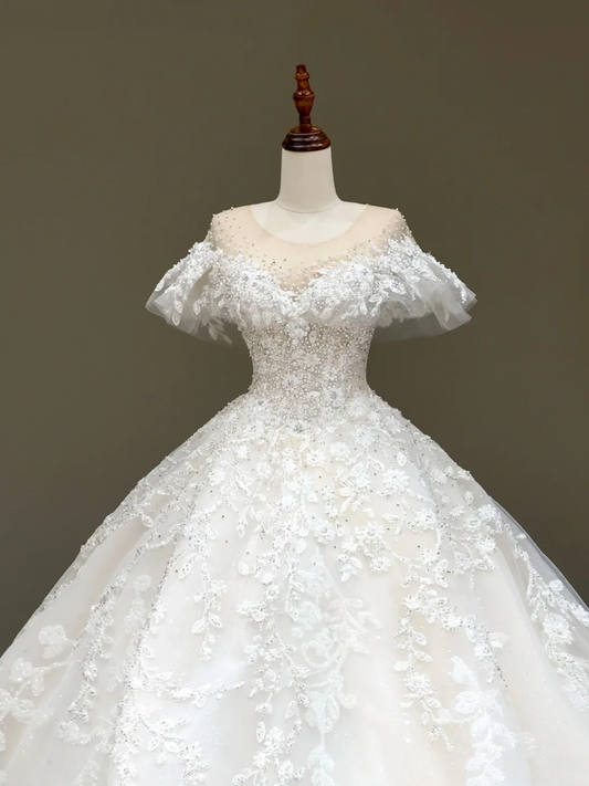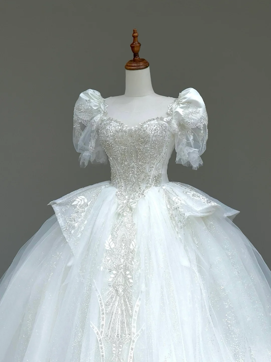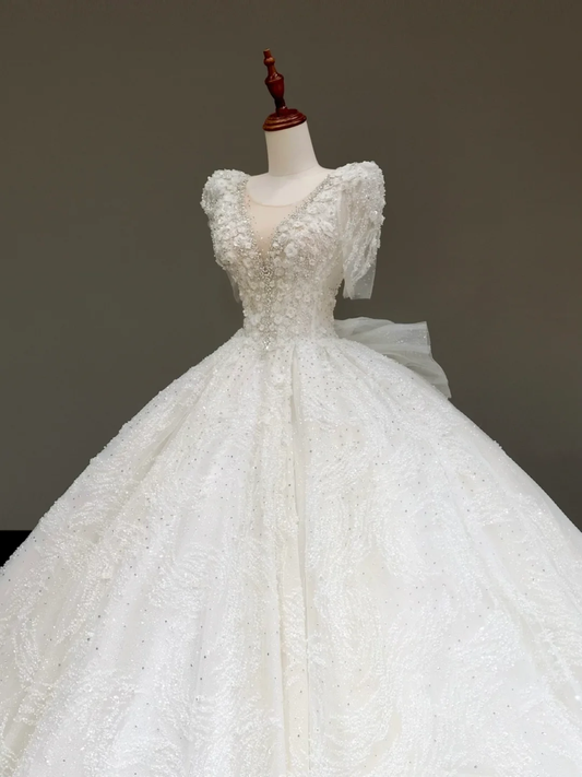 Princess Bridal Gown Ball Gown Sweetheart Short Sleeves White Sequin Wedding Dresses Bridal Gowns DP812