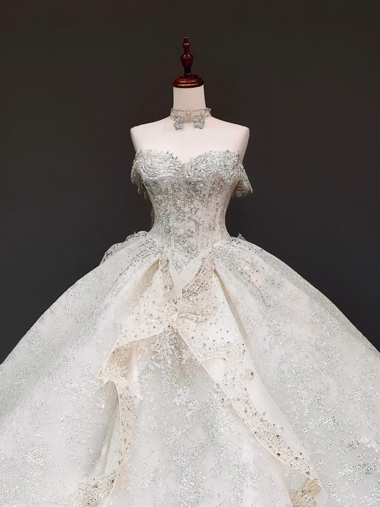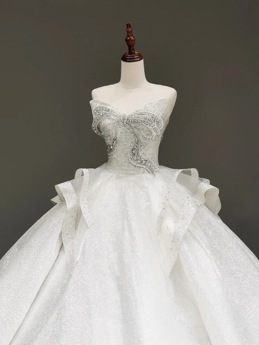 Princess Bridal Gown Ball Gown Strapless Sequin White Beads Wedding Dresses Bridal Gowns DP825