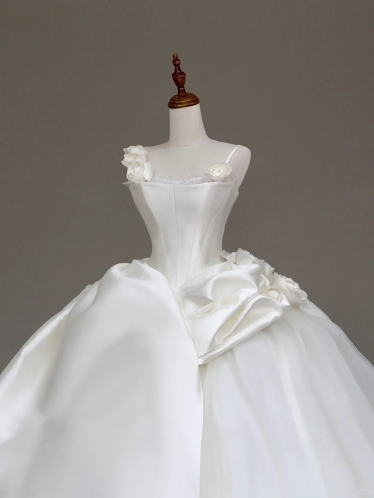 Unique Bridal Gown Ball Gown Straps White Satin Wedding Dresses Bridal Gowns DP638