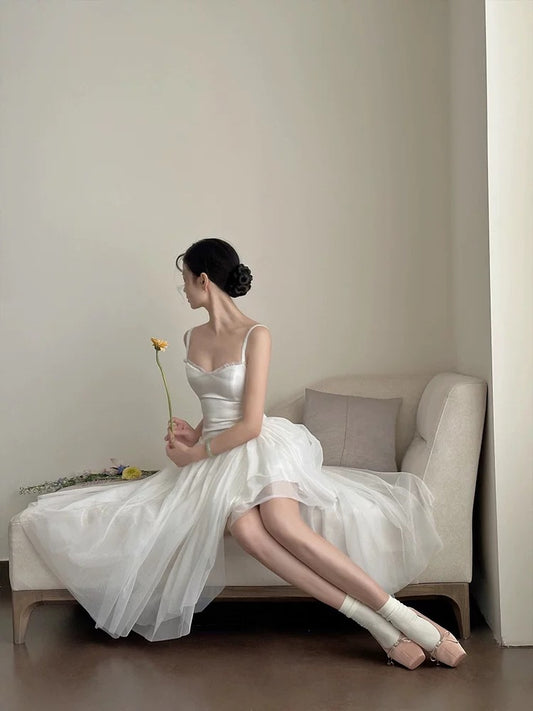 Simple A Line Spaghetti Straps Prom Gown Summer Wedding Guest Dress Bridal Guest Dresses White Wedding Outfits For Guest W0781