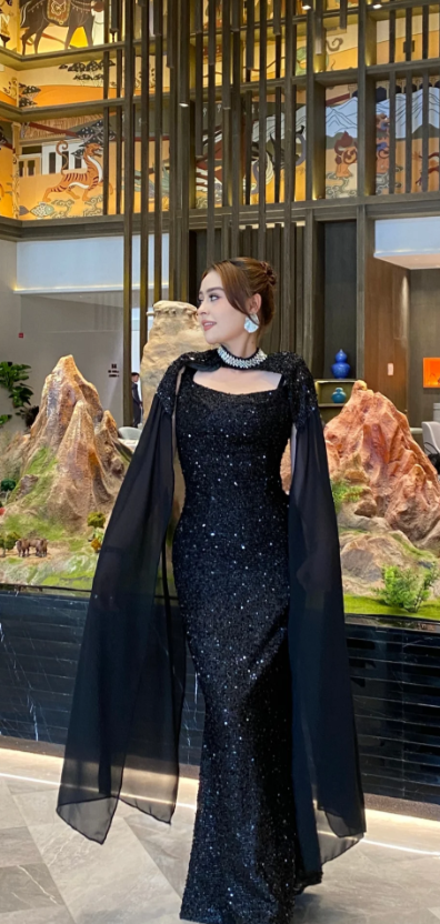 Elegant Mermaid Long Prom Dresses Chiffon Black Evening Dresses Wedding Guest Dresses DP3788