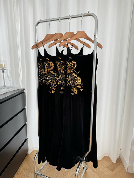 Sexy Mermaid Spaghetti Straps Black Velvet Long Summer Dress For Women DP0027