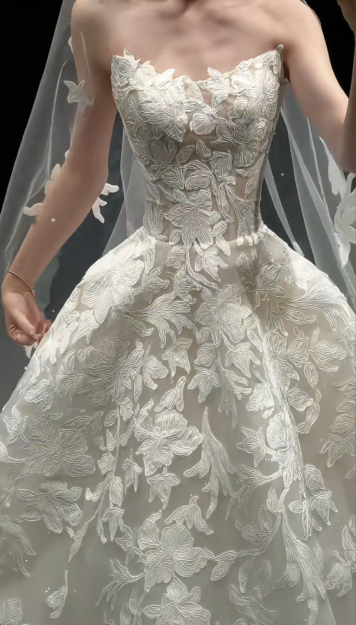 Simple A-Line Long Wedding Dresses Applique Tulle StraplessWhite Bridal Gowns Sleeveless Bridal Dresses DP04624