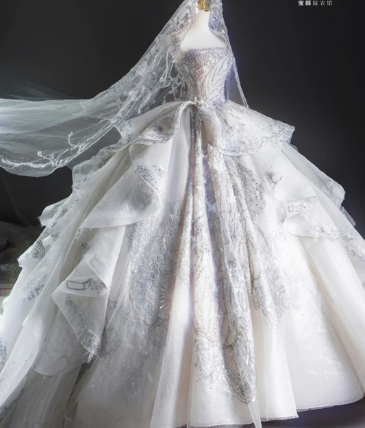 Robe de mariée blanche longue à paillettes, robe de bal unique, sans bretelles, DP320