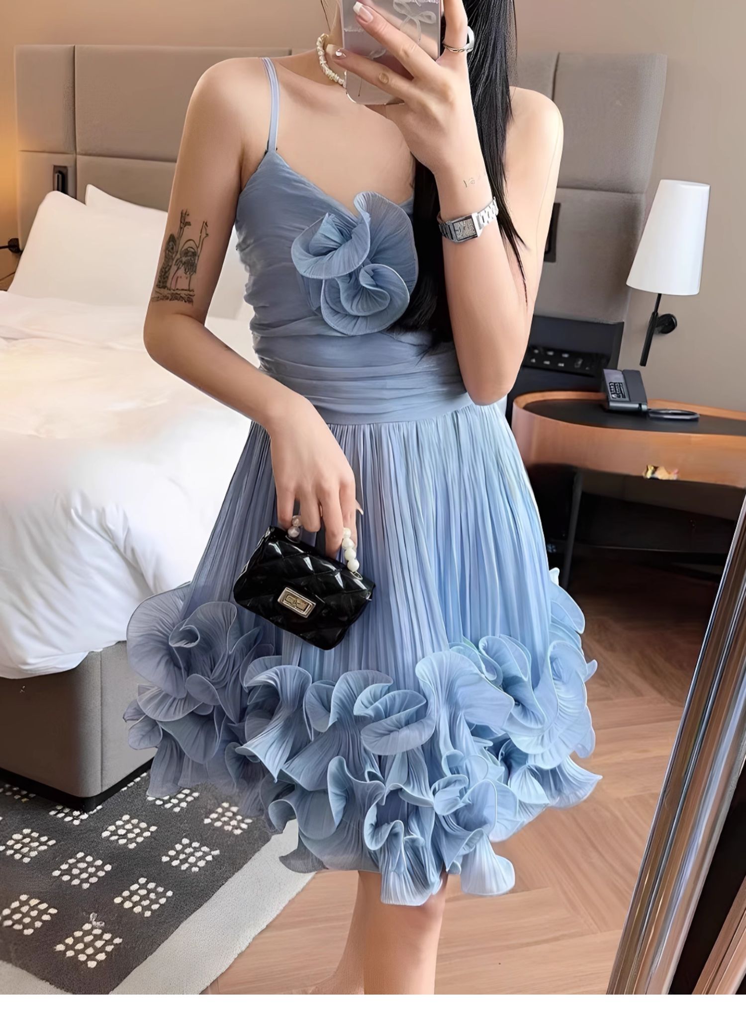 Robe de bal modeste à bretelles spaghetti bleu poudré, robe de soirée courte pour 16e anniversaire, robe de remise de diplôme, mini robe Hoco DH2531