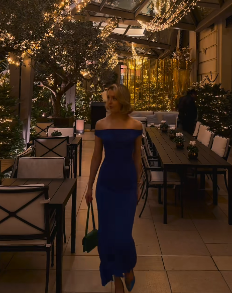 Blue Sexy Sheath Long Prom Dresses Chiffon Off-shoulder Evening Dresses Sleeveless Birthday Dresses DP04389