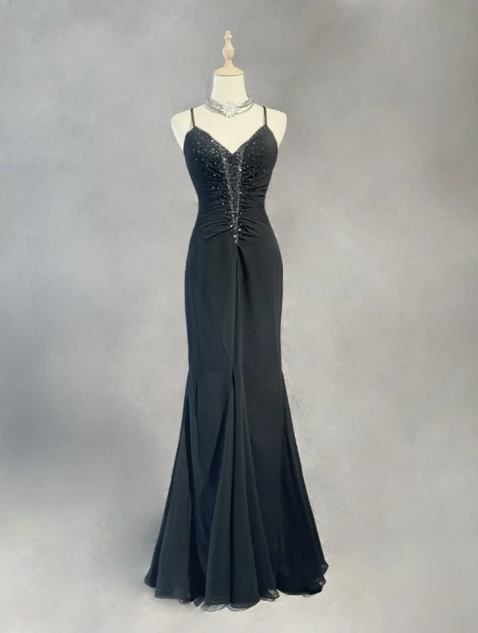 Chic Sheath Evening Dresses Beaded Chiffon Black Long Prom Dresses Sleeveless Brithday Dresses DP04585