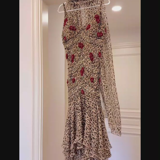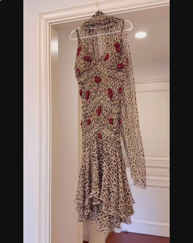 Sexy Sheath Leopard Short Prom Dresses Chiffon Spaghetti Straps Long Evening Dresses Sleeveless Party Dresses DP04611