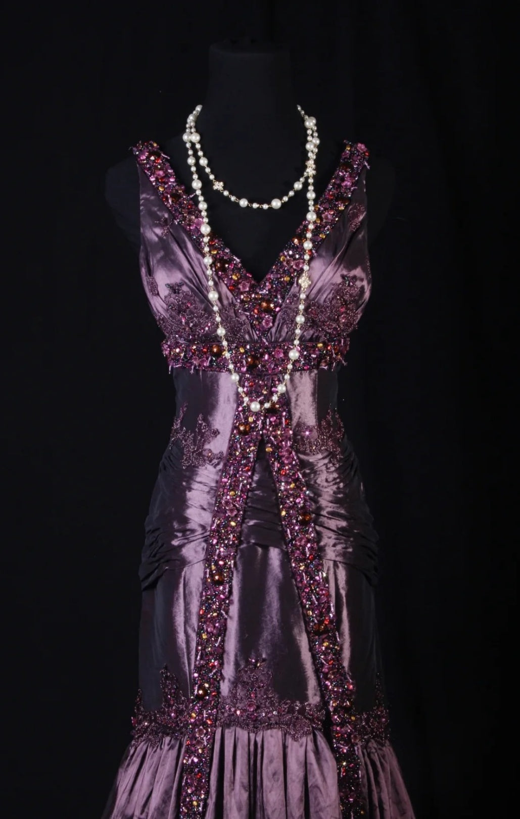 Vintage Grape Prom Dress V-Neck Sheath Evening Dress Satin Beaded Formal Dress DP05056