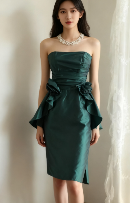 Vintage Sheath Strapless Dark Green Taffeta Mini Short Formal 8th Grade Homecoming Dresses Summer Middle School Hoco Dress 18th Birthday Outfits DH1311